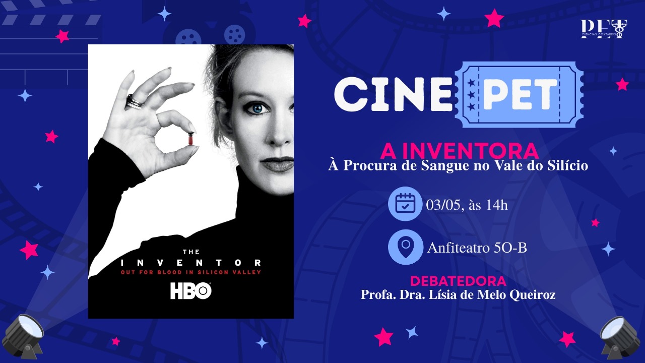 A exibição será do documentário "A Inventora - À Procura de Sangue no Vale do Silício”, que trata sobre a fraude da Theranos, uma empresa bilionária que prometeu revolucionar o mundo com seu novo método de análise de sangue.