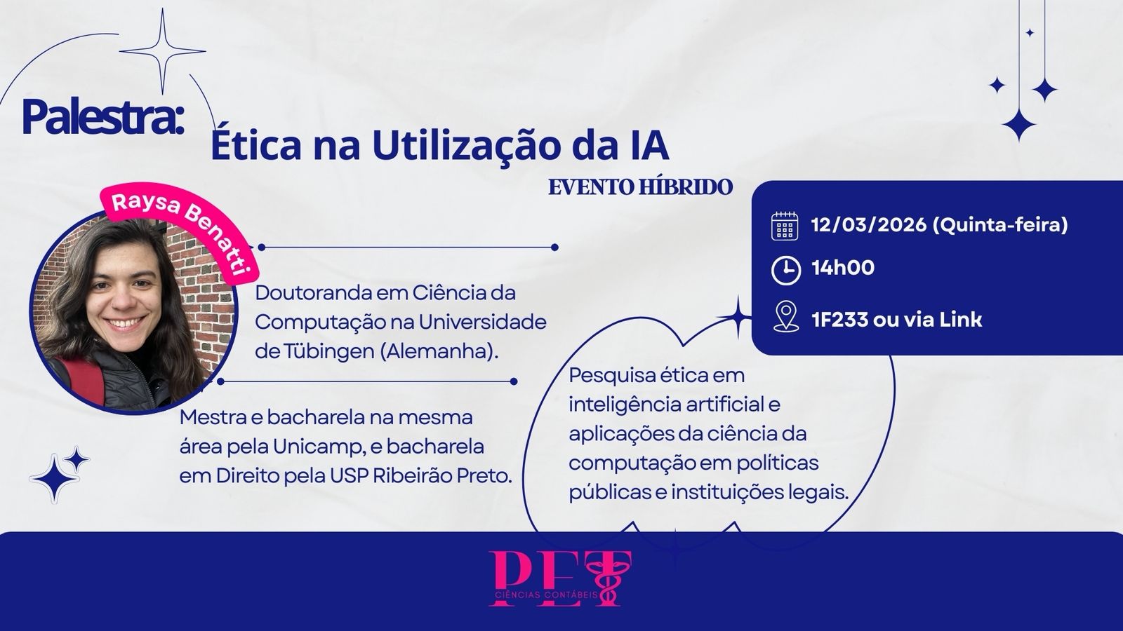 A palestra será conduzida pela pesquisadora Raysa Benatti no dia 12/03/2026 (Quinta-feira), às 14h00 em formato híbrido, presencialmente na sala 1F233 e com transmissão online através do link: https://x.gd/FPJAW.