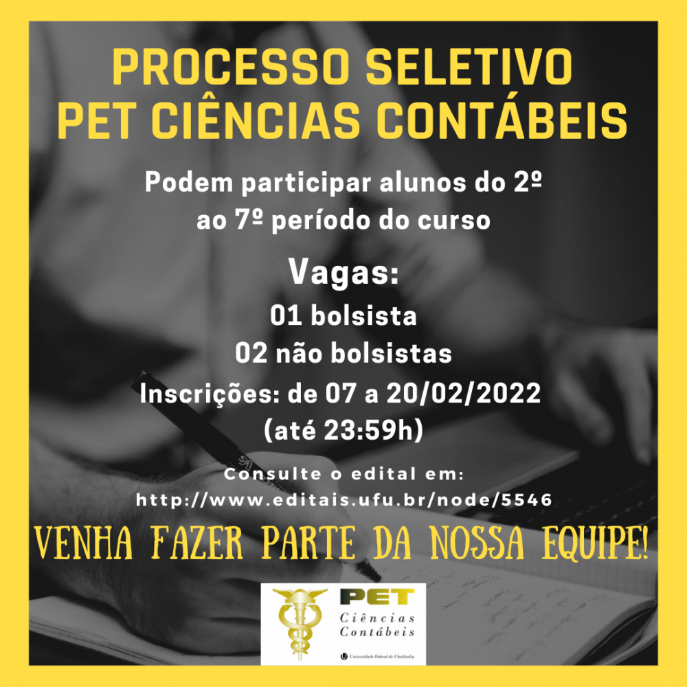 até 24/02/2022 (17:00h) no site: http://www.pet.facic.ufu.br/